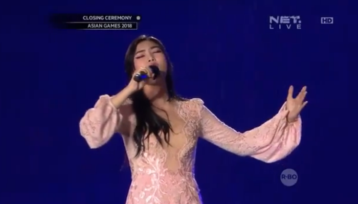 Penampilannya ini bila dilihat di televisi dipadupadankan juga dengan kilas balik beberapa momen haru saat pertandingan selama Asian Games.