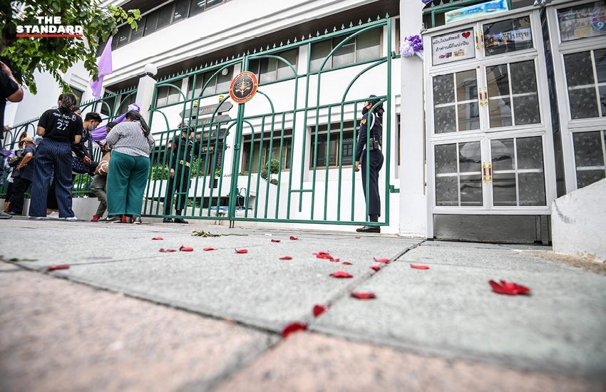 เศษดอกกุหลาบที่ประชาชนมอบให้ ส.อ. ณรงค์ชัย ตกอยู่หน้าศาลทหาร